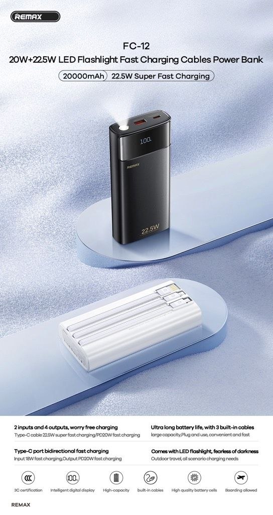 توان خروجی22.5 واتقابلیت شارژ هم زمانچند دستگاهمدیریت دماکنترل هوشمند حرارتنمایشگر LED شارژداردچراغ قوه سر خوددارد